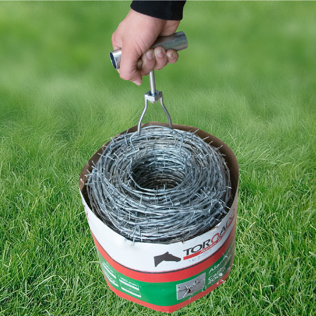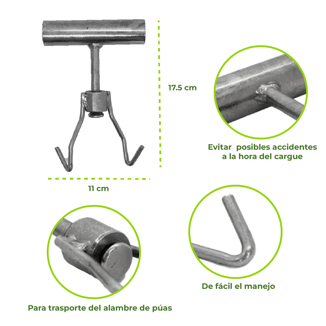 Esta herramienta hace mas fácil el manejo, Ahorrando tiempo en procesos de instalación y trasporte del alambre de púas , para evitar posibles accidentes a la hora del cargue y movimiento del mismo.