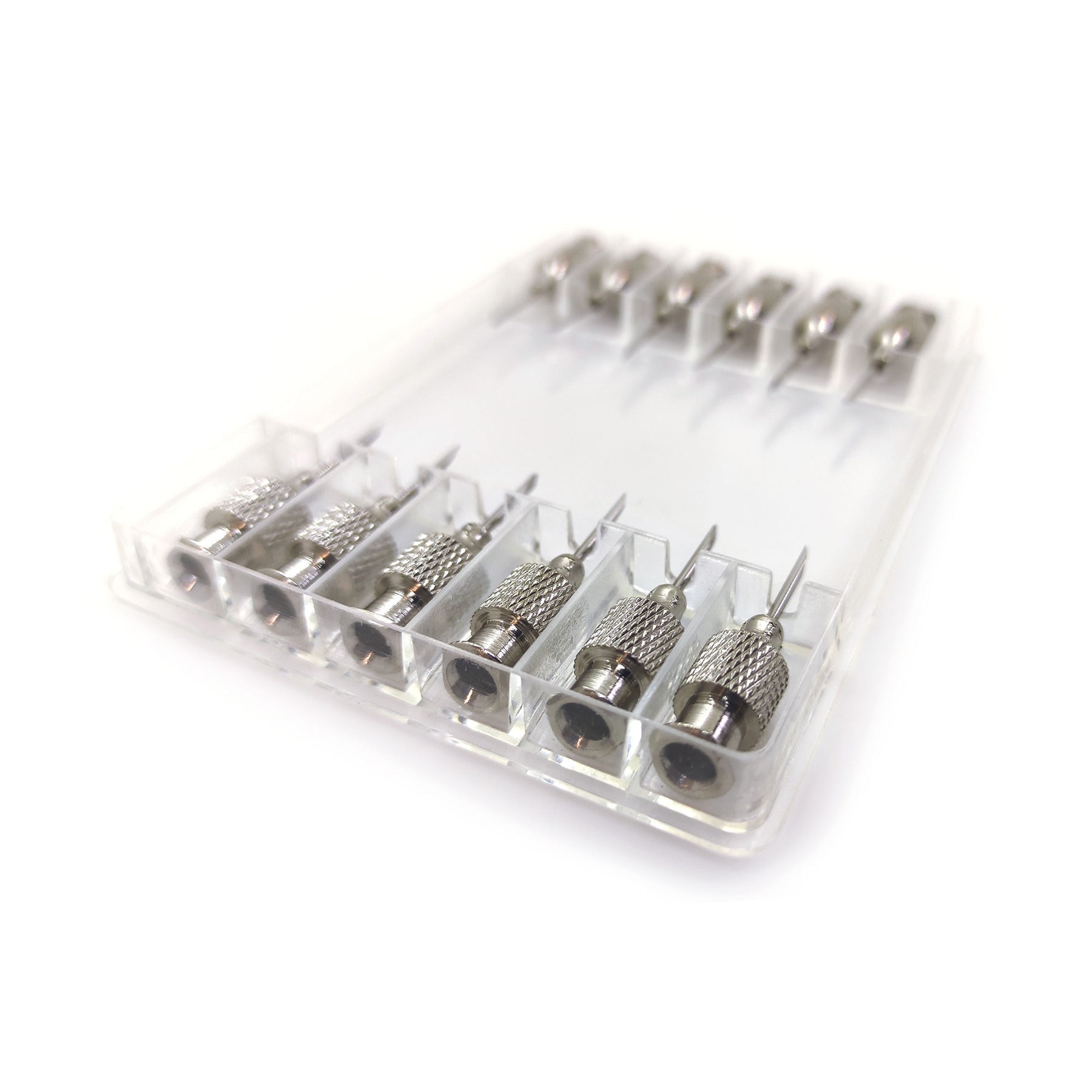 - Juego de agujas en acero reutilizables por 12 unidades de 1/2″.