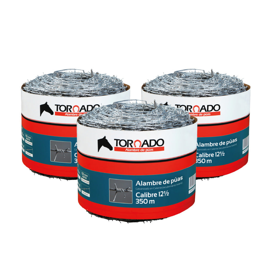 Alambre de Púas C12.5 x 350m PAQUETE X3 Unidades TORNADO