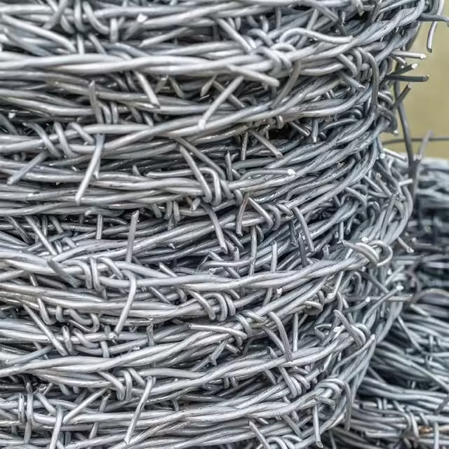 - Alambre de púas con recubrimiento en zinc, resistente y de fácil manejo.