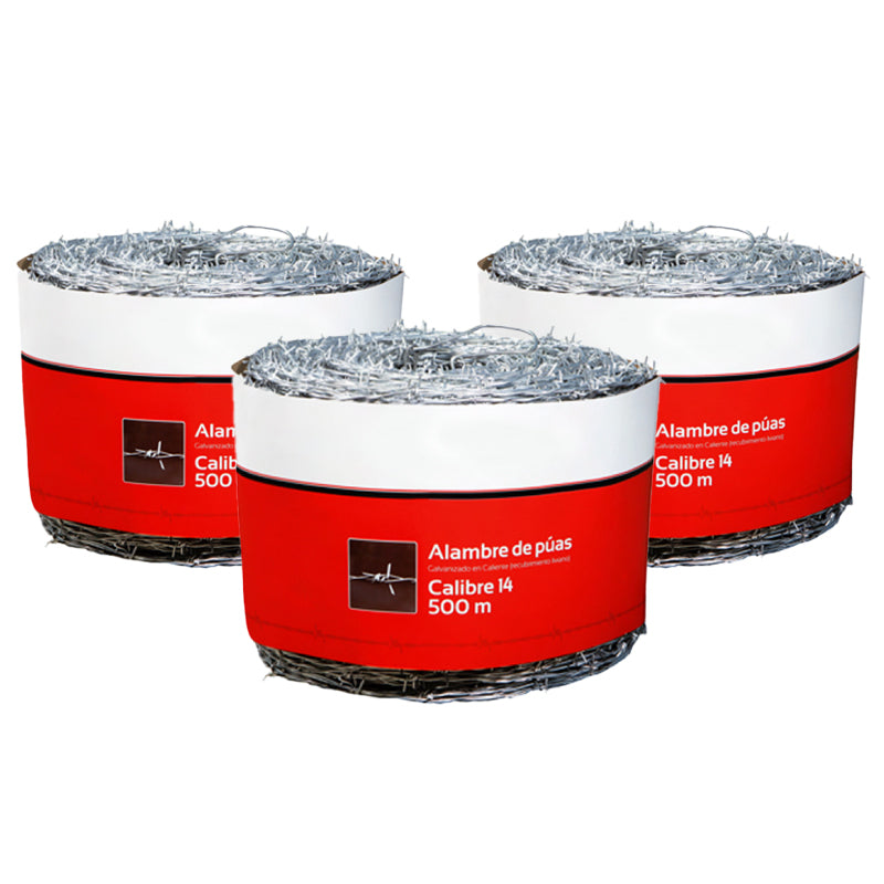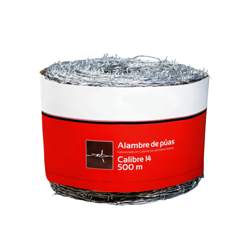 - Alambre de púas con recubrimiento en zinc, resistente y de fácil manejo.