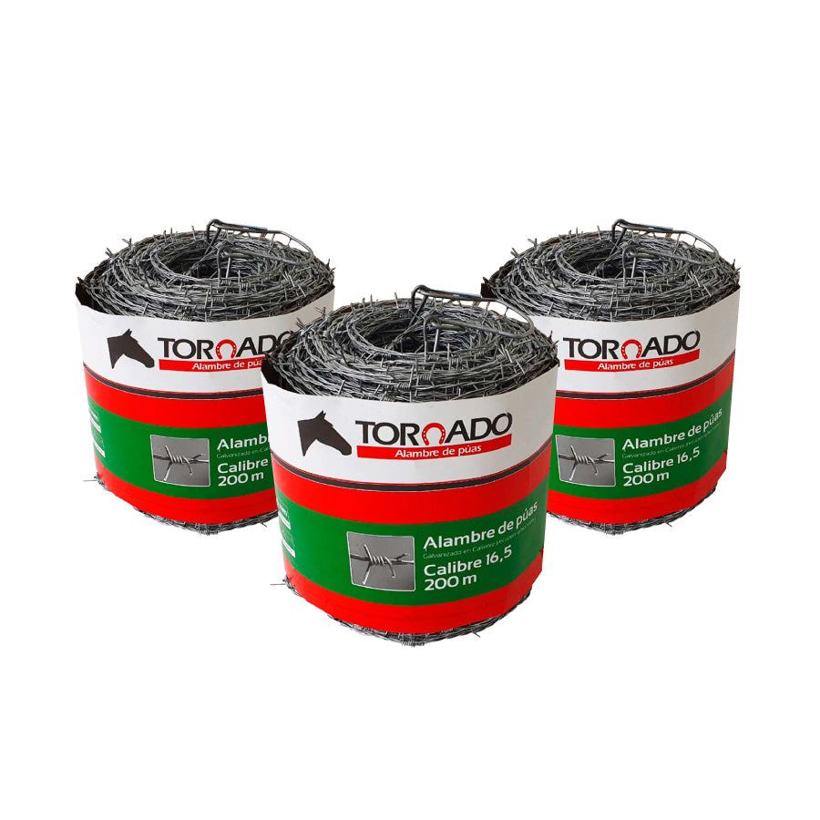 Alambre de Púas C16.5 x 200m PAQUETE X3 unds TORNADO