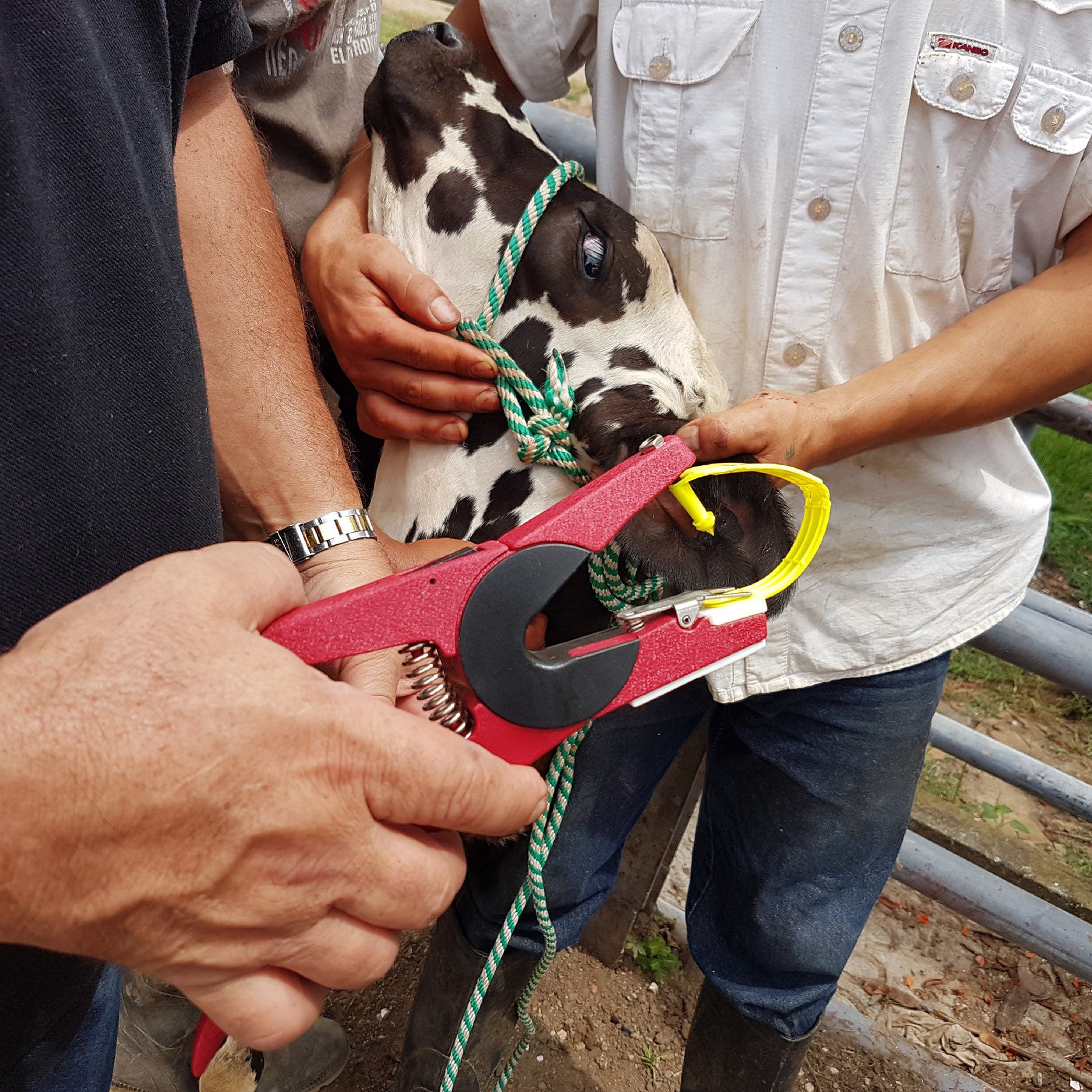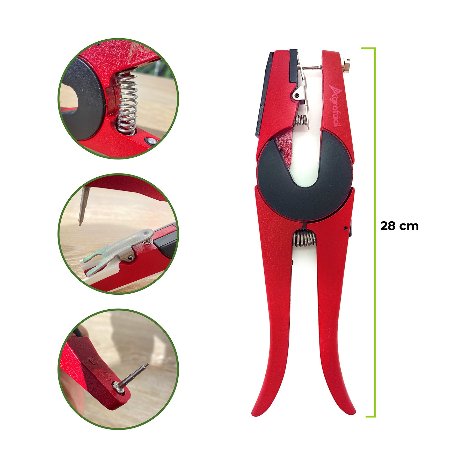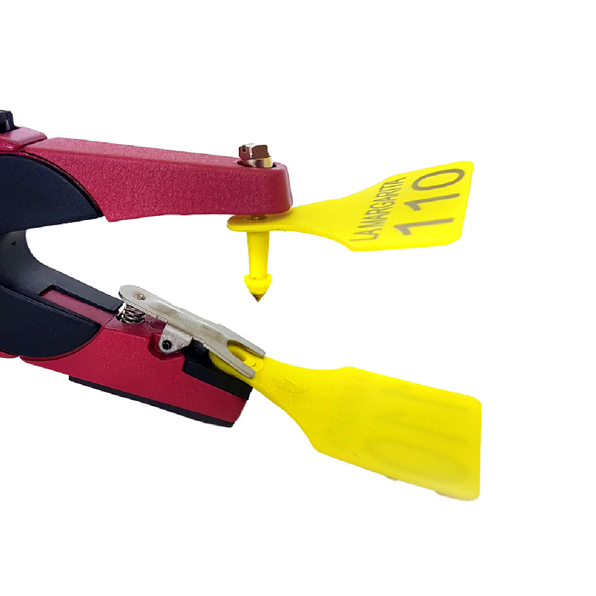 Aplicador para diferentes tipos de orejeras (chapetas, aretes) para ganado con pin plástico y metálico. Lo puedes utilizar para aplicar orejeras para ganado bovino, ovejas, cabras y cerdos.