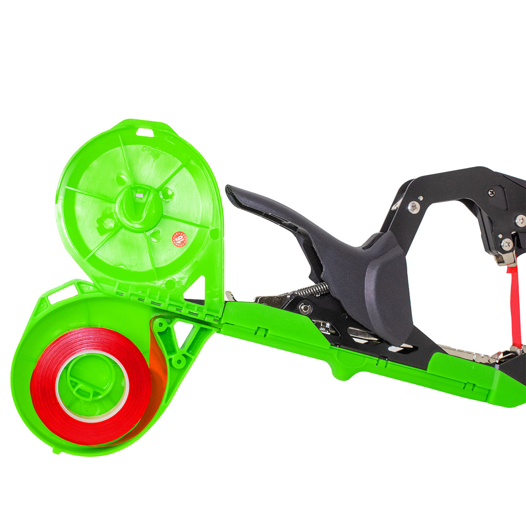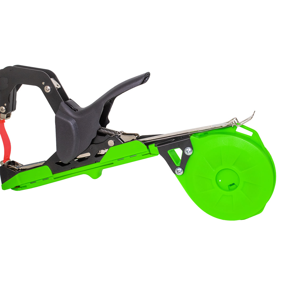 - Cuenta con regulador de apertura para graduar la longitud de cinta por atado (según el tallo y longitud que se desee en cada atado).