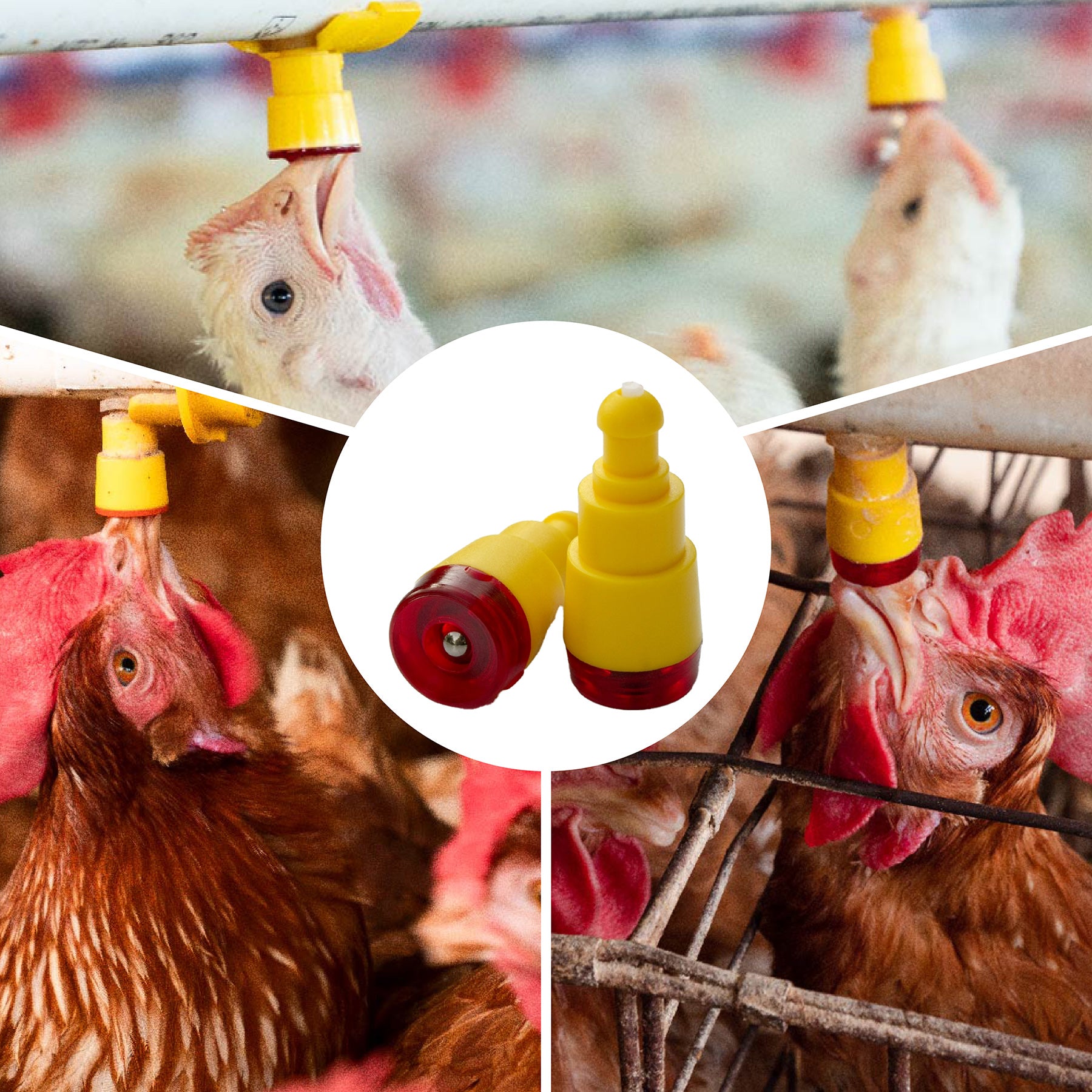 El bebedero tipo NIPPLE es un sistema de suministro de agua de tetina o pezón, especialmente diseñado para atender las necesidades de pollos de engorde, gallinas ponedoras en piso o jaula, reproductoras, codornices y pavos. Es el único Nipple que lleva dos esferas y dos sellos independientes, que le permiten asegurar un mejor comportamiento. Las esferas y los sellos de acero inoxidable son de alta precisión, que le dan al Nippple hermeticidad absoluta, cuando la calidad y la presión del agua son correctas.