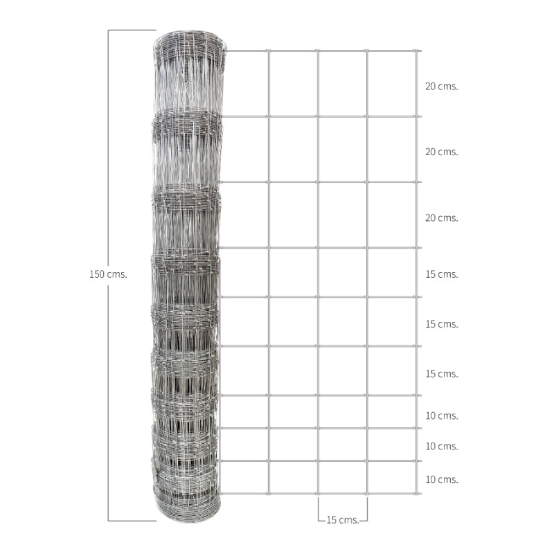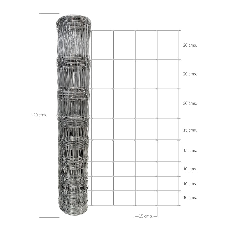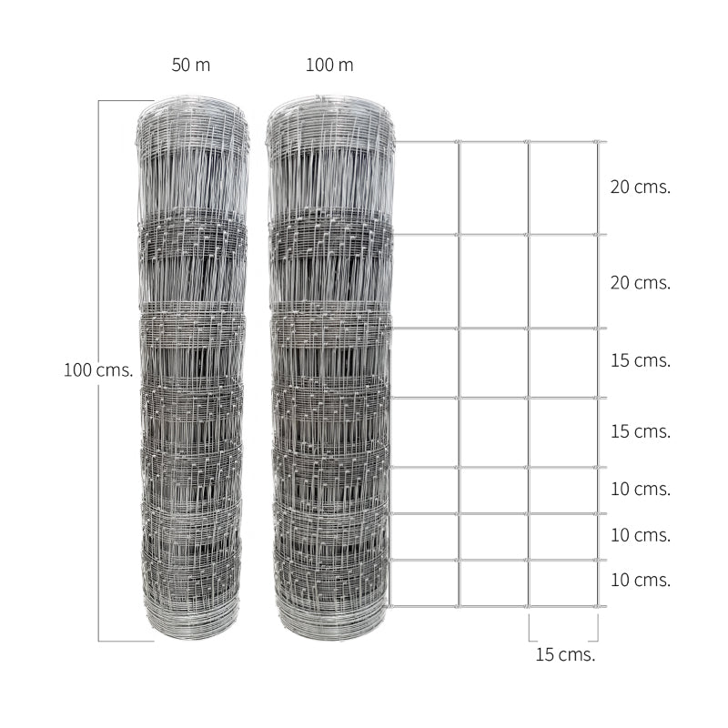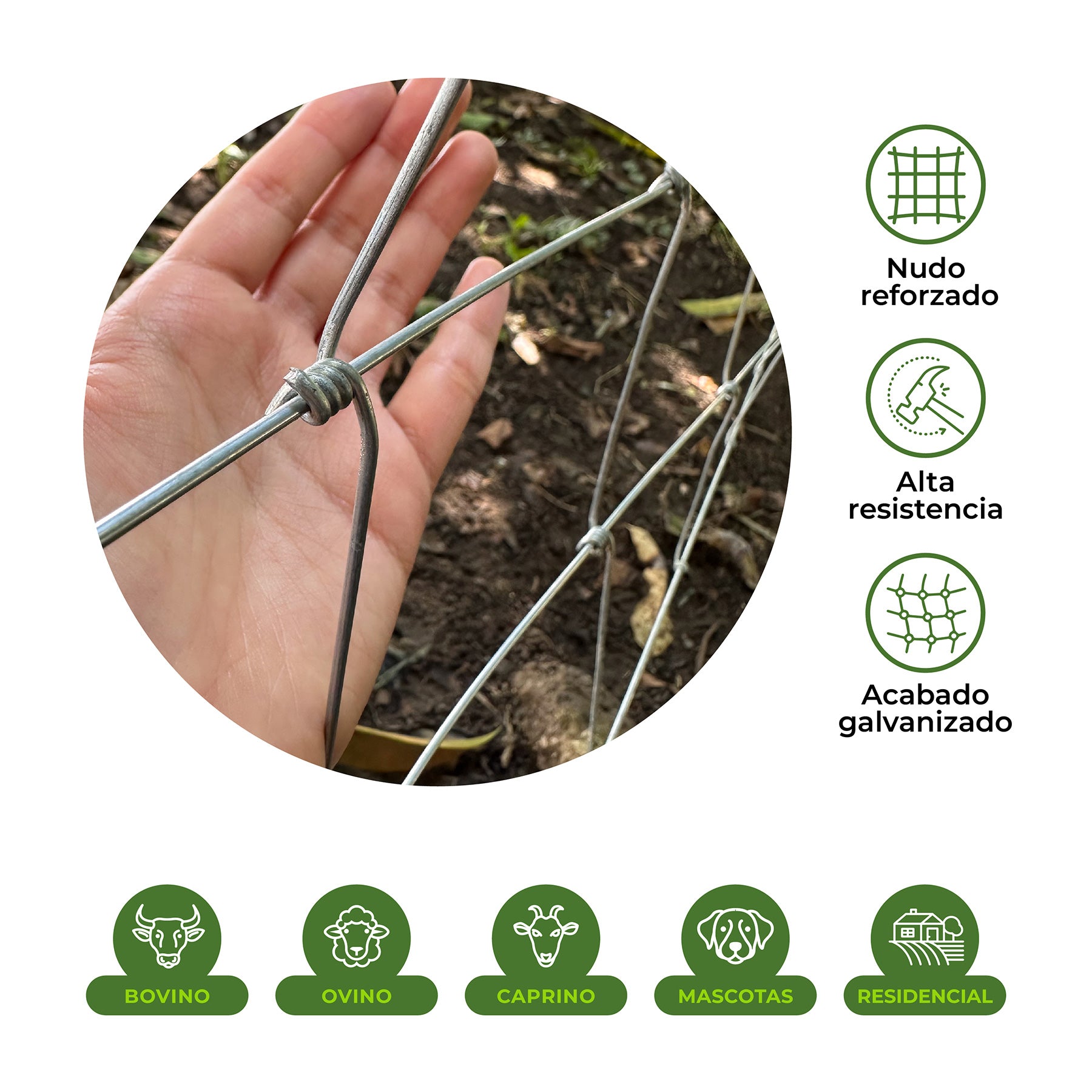 cerramientos para ganado (ovino y bovino) y mascotas. Posee alambre con doble capa de zinc el cual no se oxida. Incluye nudos reforzados con triple torsión para una mayor resistencia ante la tensión.