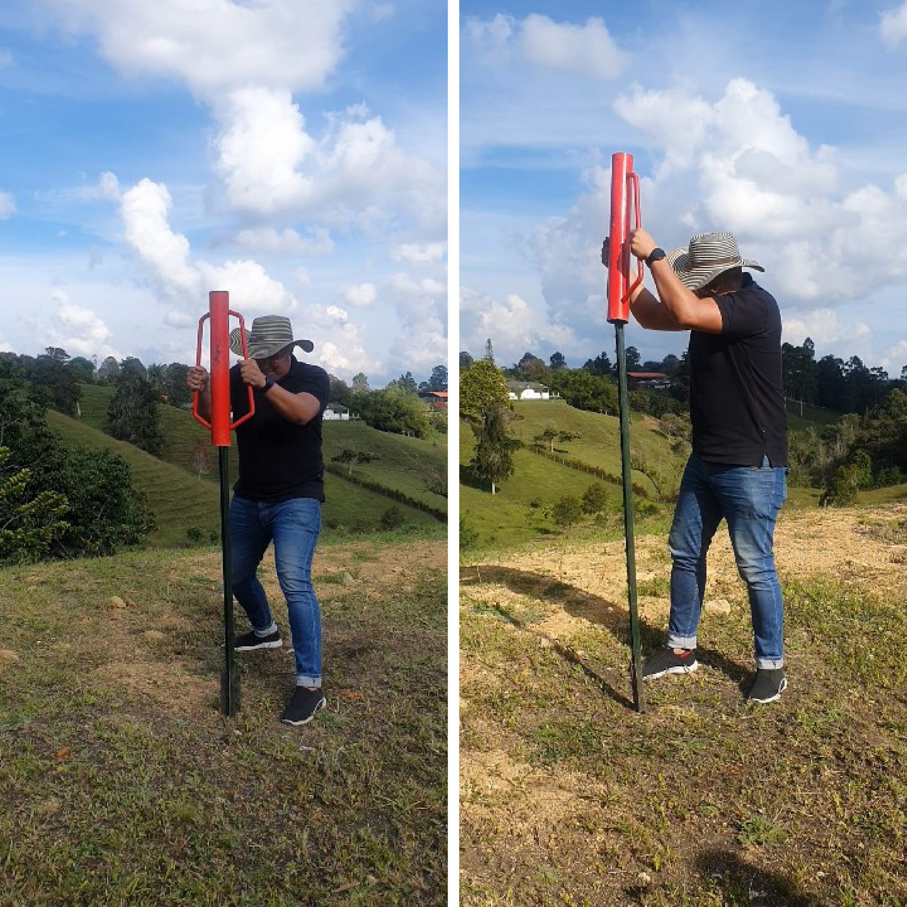 - La herramienta permite golpear al poste en la parte superior para facilitar su anclaje en el suelo.