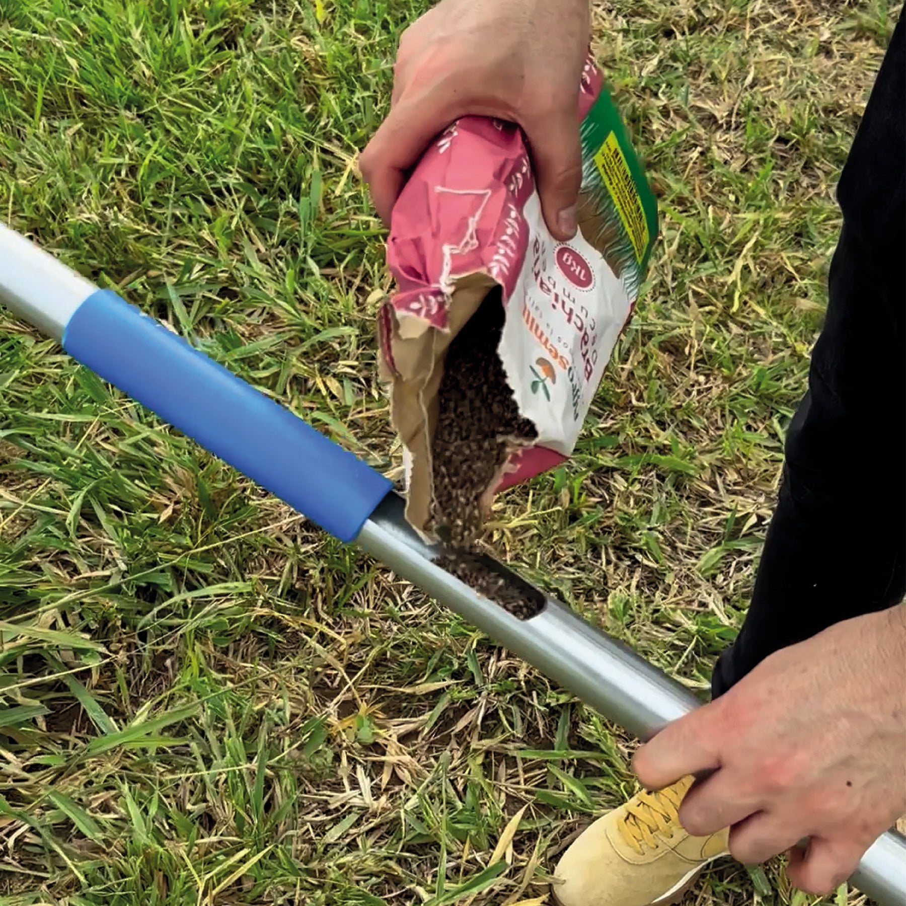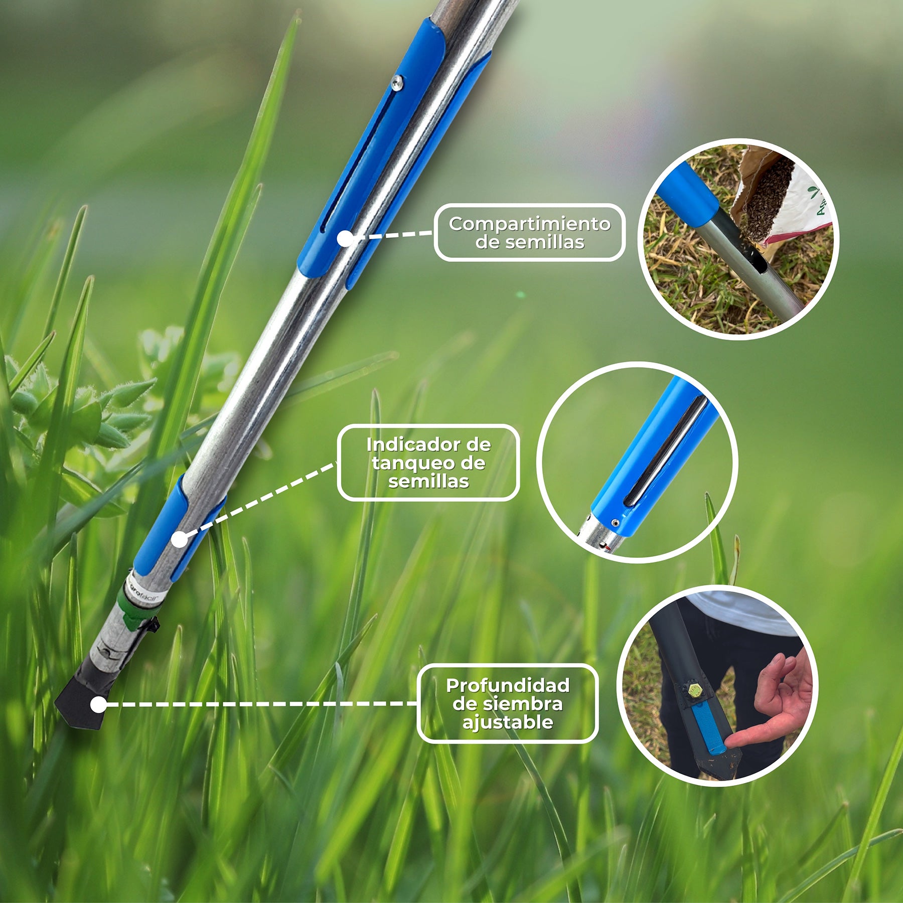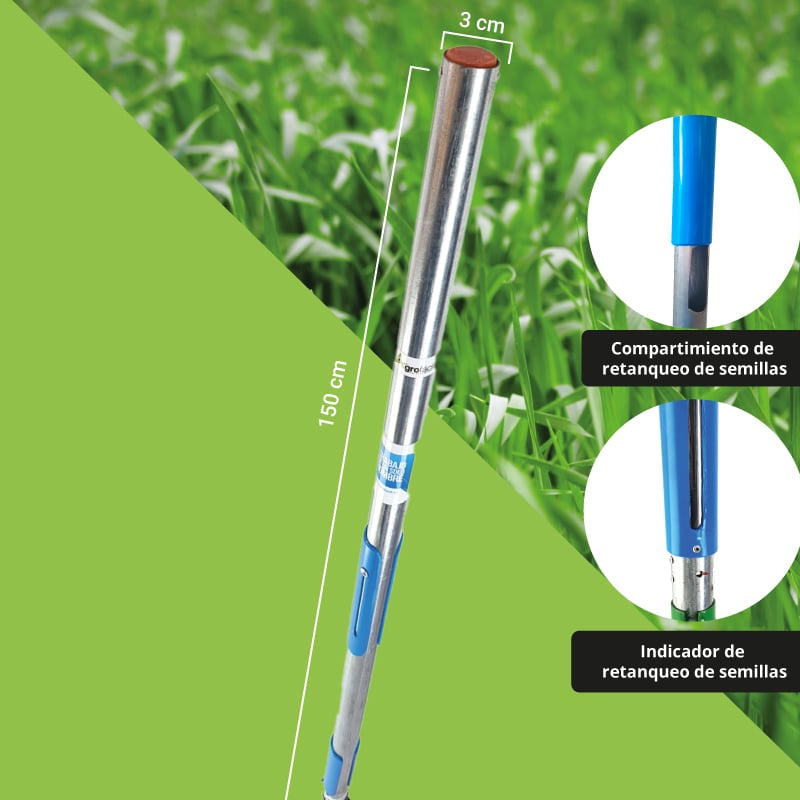 - La punta en acero reforzado garantiza siembras incluso en terrenos duros o no preparados.