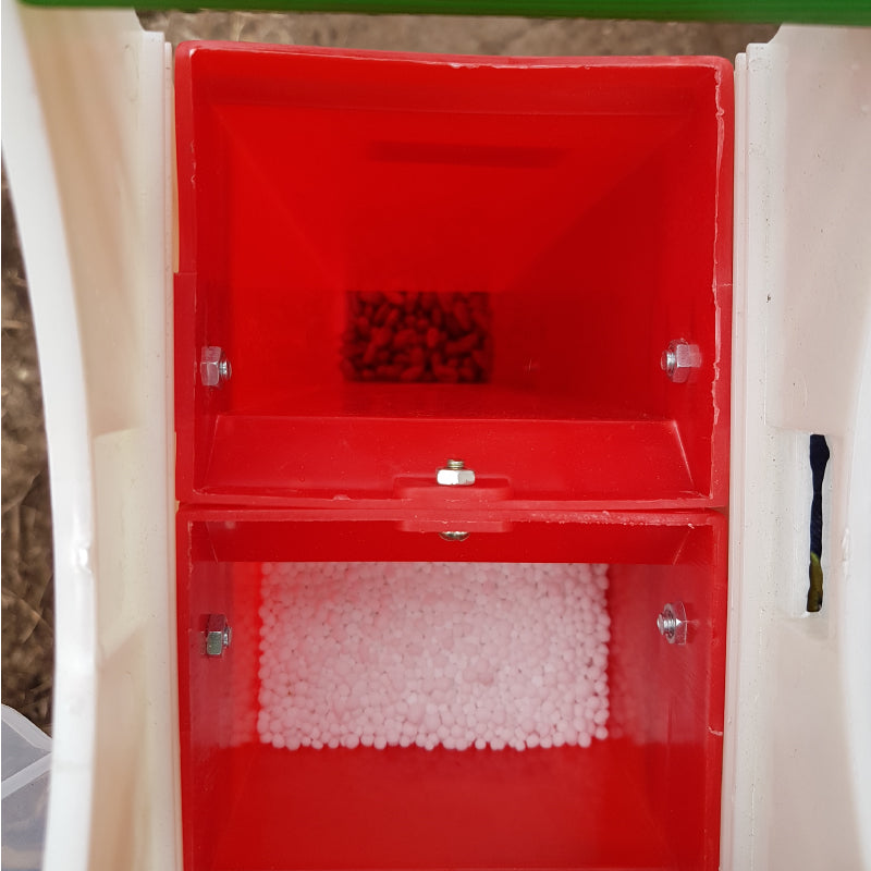 - Calibración de abono desde 3 hasta 15g aproximadamente (depende de la granulometría del fertilizante).