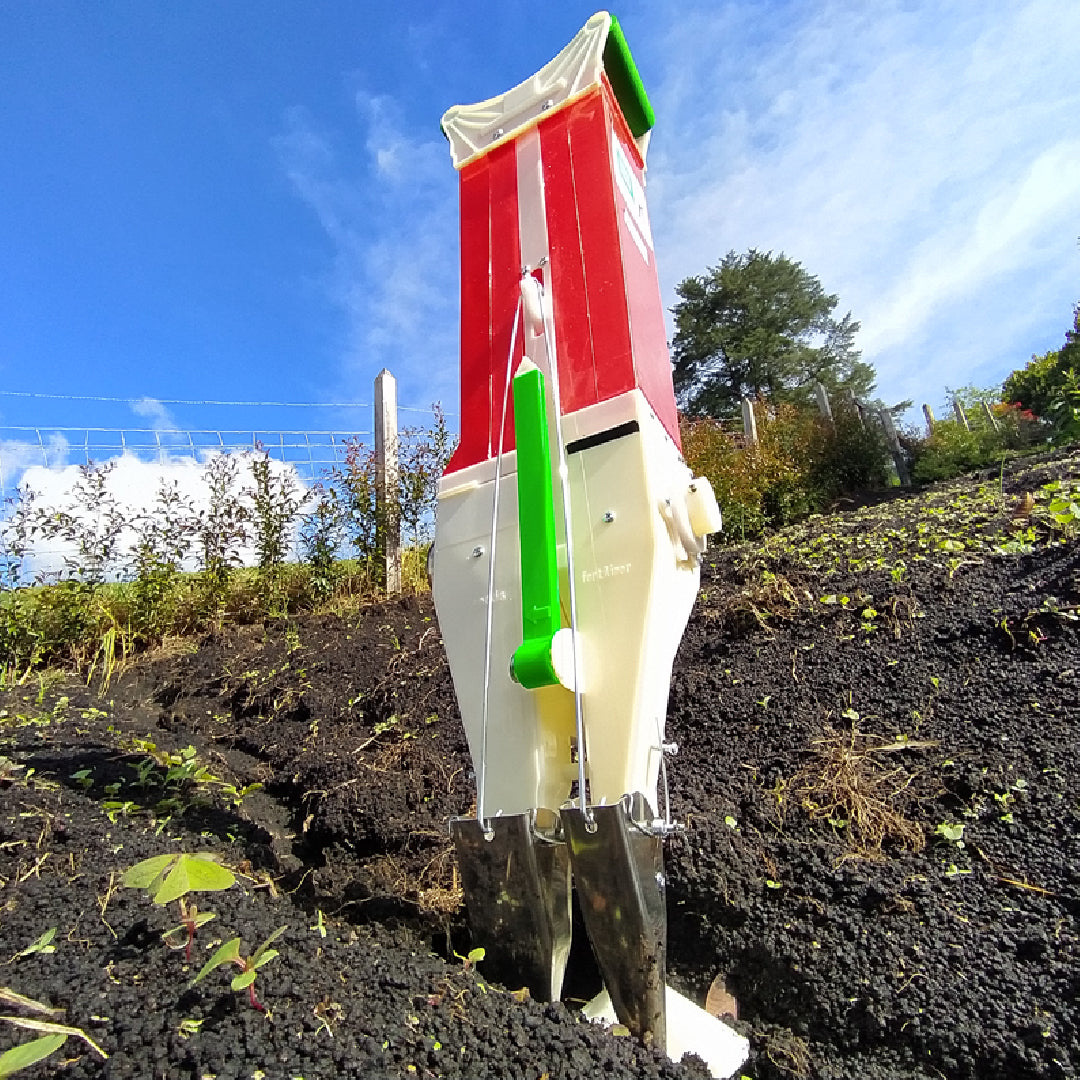 - Picos de siembra en acero galvanizado, otorgándole alta resistencia y durabilidad, pudiendo trabajar hasta en terrenos duros.