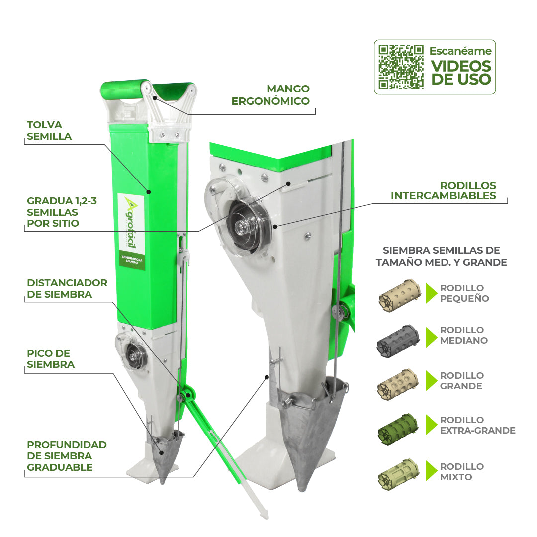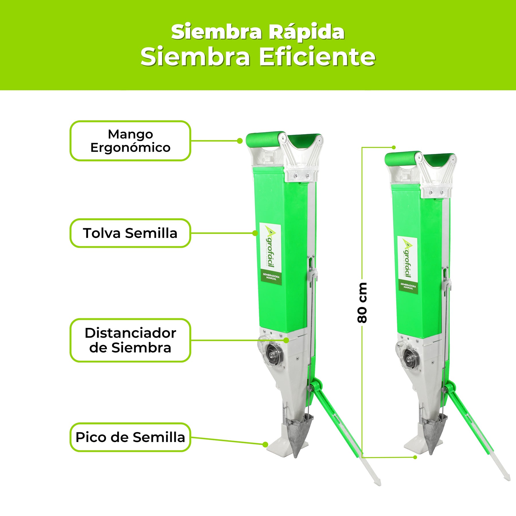 - Construida en plástico para un manejo más ligero y mejorar los rendimientos de siembra.