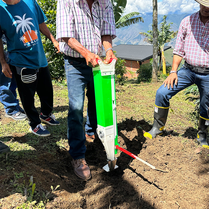 - Picos de siembra en acero galvanizado, otorgándole alta resistencia y durabilidad, pudiendo trabajar hasta en terrenos duros.