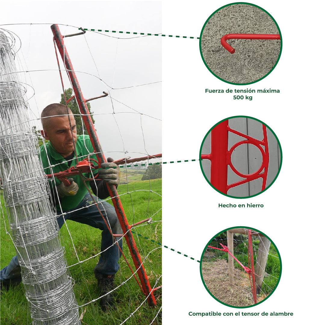 - Tensor para facilitar el templado de diferentes tipos de malla (graduada, eslabonada, cuadrada, hexagonal, entre otras).