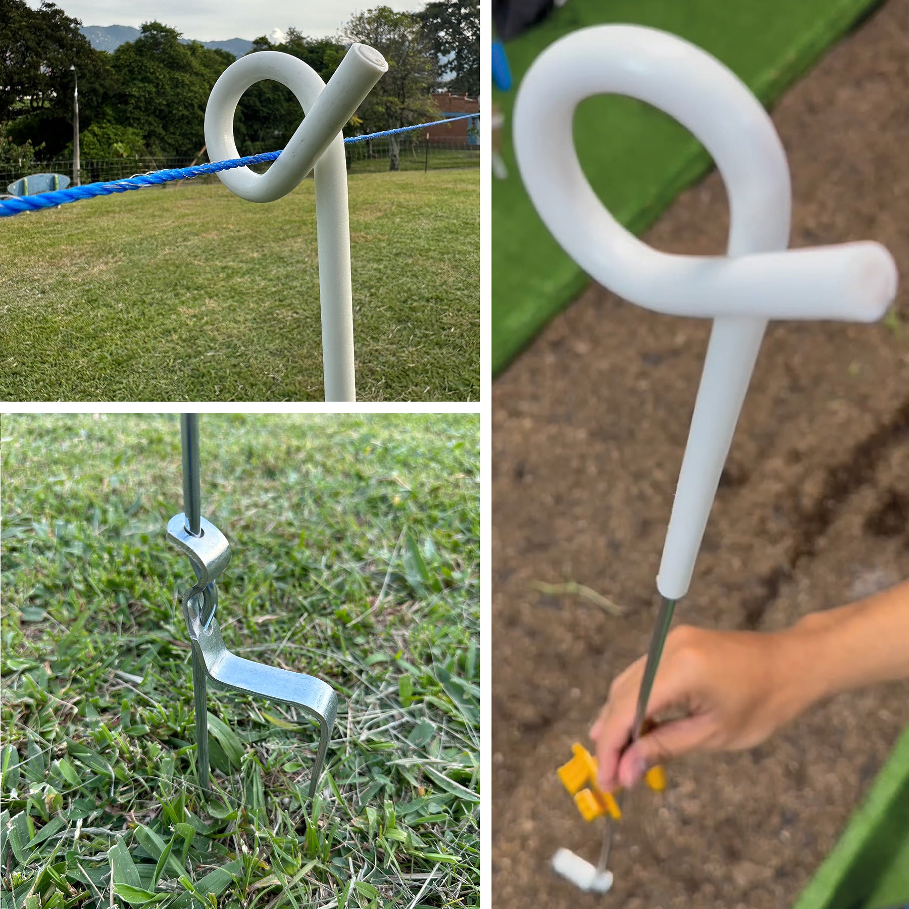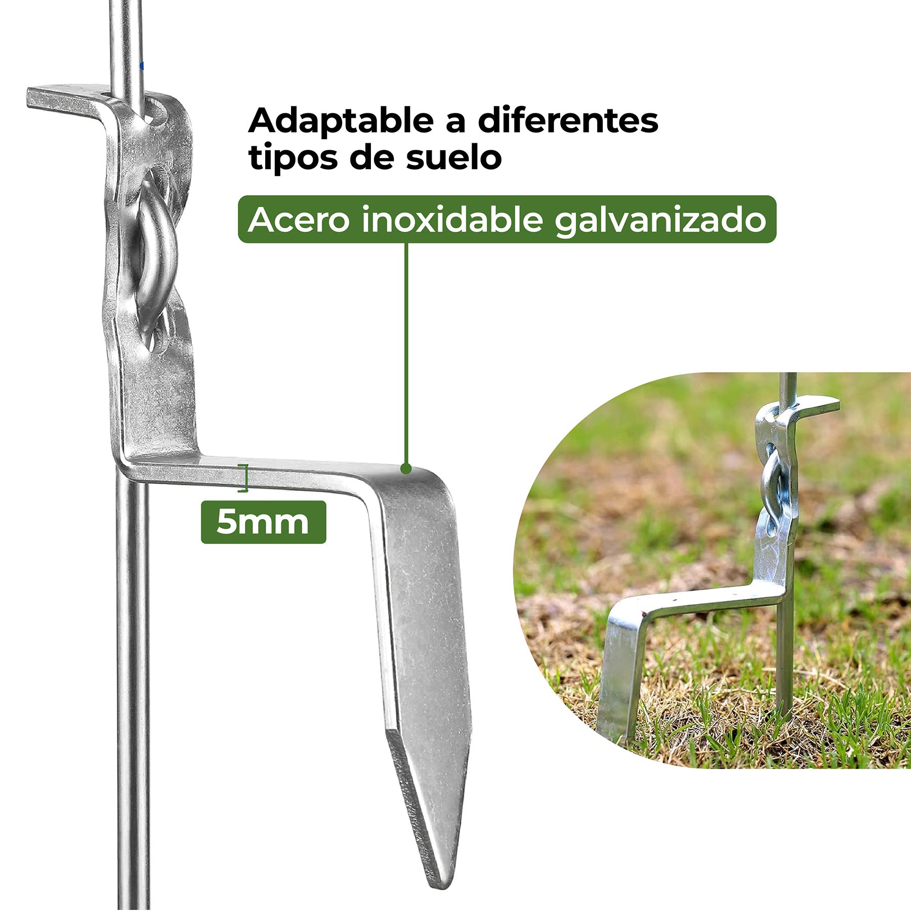 - Tiene un bucle aislado en la parte superior que hace que la inserción del cable sea simple y rápida. Posee un escalón soldado que sostiene la varilla de forma segura en el suelo.
