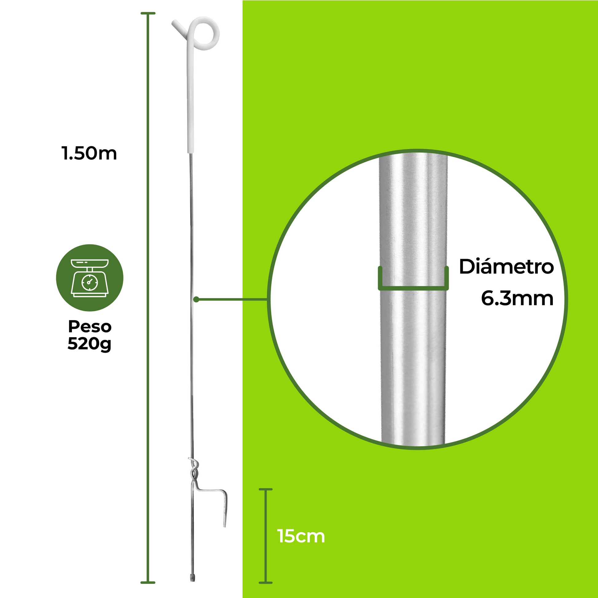 Varilla cola de cerdo 1.50m Agrofacil en acero galvanizado para la implementación de cercas móviles. Utilízala en cerramientos con cordón y cinta eléctrica.
